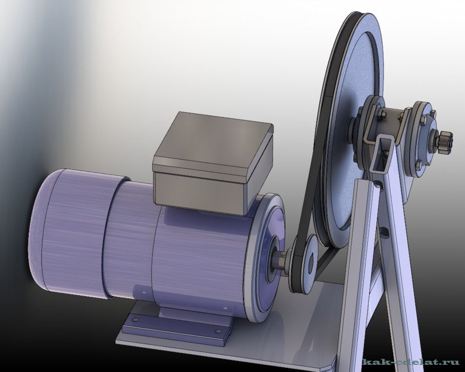 4. На электродвигатель устанавливаем ведущий шкив, используя шпоночное соединение.