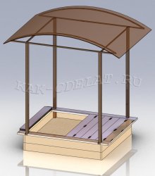 Если у вас или ваших соседей есть кошки, то лучше всего изготовить ее с откидывающейся крышкой, чтобы они не использовали её в качестве туалета. Также в ней необходимо сделать лавочки по краям, чтобы дети не садились на песок и могли устроиться с комфортом. Если место, где будет стоять конструкция, солнечное, то можно сделать крышу над ней, для этого в центре нужно будет установить один столб, или четыре столба по углам на которые укрепляется навес.