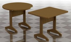 Конструкция ножек стола остается неизменной. Вместо прямоугольной столешницы изготавливается круглая столешница диаметром 100 (мм). Привязка посадочных отверстий с тыльной стороны, такая же, как и у прямоугольной столешницы.