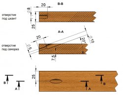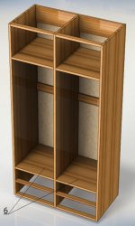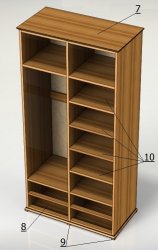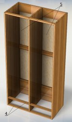 • на центральной стенке – под шканты, направляющие для ящиков, крепление для полок