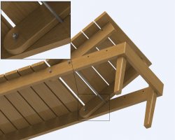 Фиксация четырех положений (углов) обеспечивается резьбовой штангой в соответствующих отверстиях продольных досок.